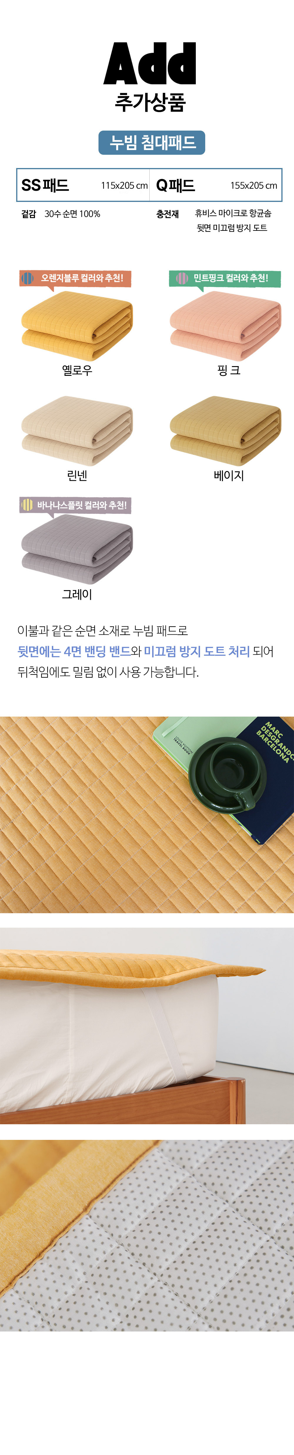 | 제품 소재 | 양면-30수 순면 100%, 충전재-옥수수솜 20%+ 폴리에스터 80% | ||