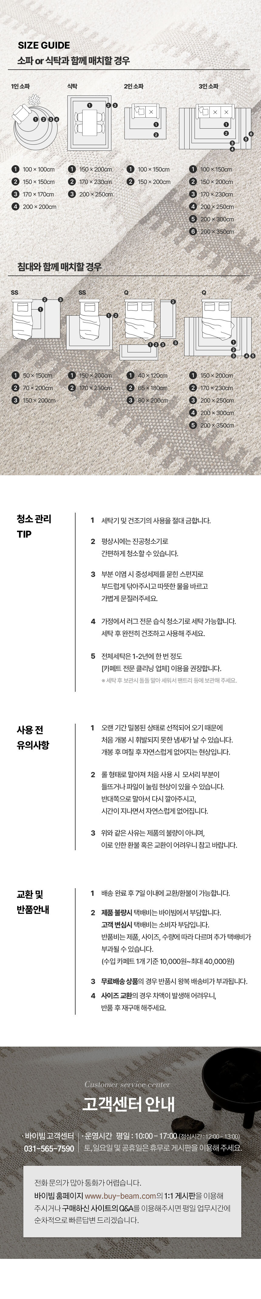 - 제품의 변심 반품시에는 추가배송비가 적용됩니다 (기본 6,000원 ~ 제품의 종류, 사이즈 및 수량에 따라 금액이 변동될 수 있습니다)